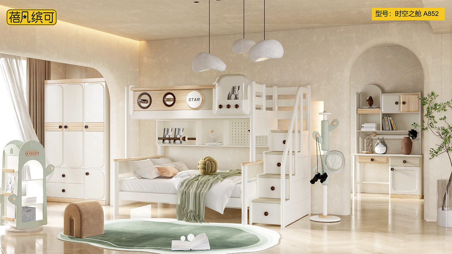 蓓凡缤可系列是蓓凡家居2023年推出的高端青少年家居系列,品牌深耕儿童家具行业三十余年,凭借先进生产设备与严苛质量标准,斩获多项行业大奖。系列秉持“匠心智造,潮领新色彩”理念,为孩子打造安全、环保、兼具功能性与成长性的生活空间。