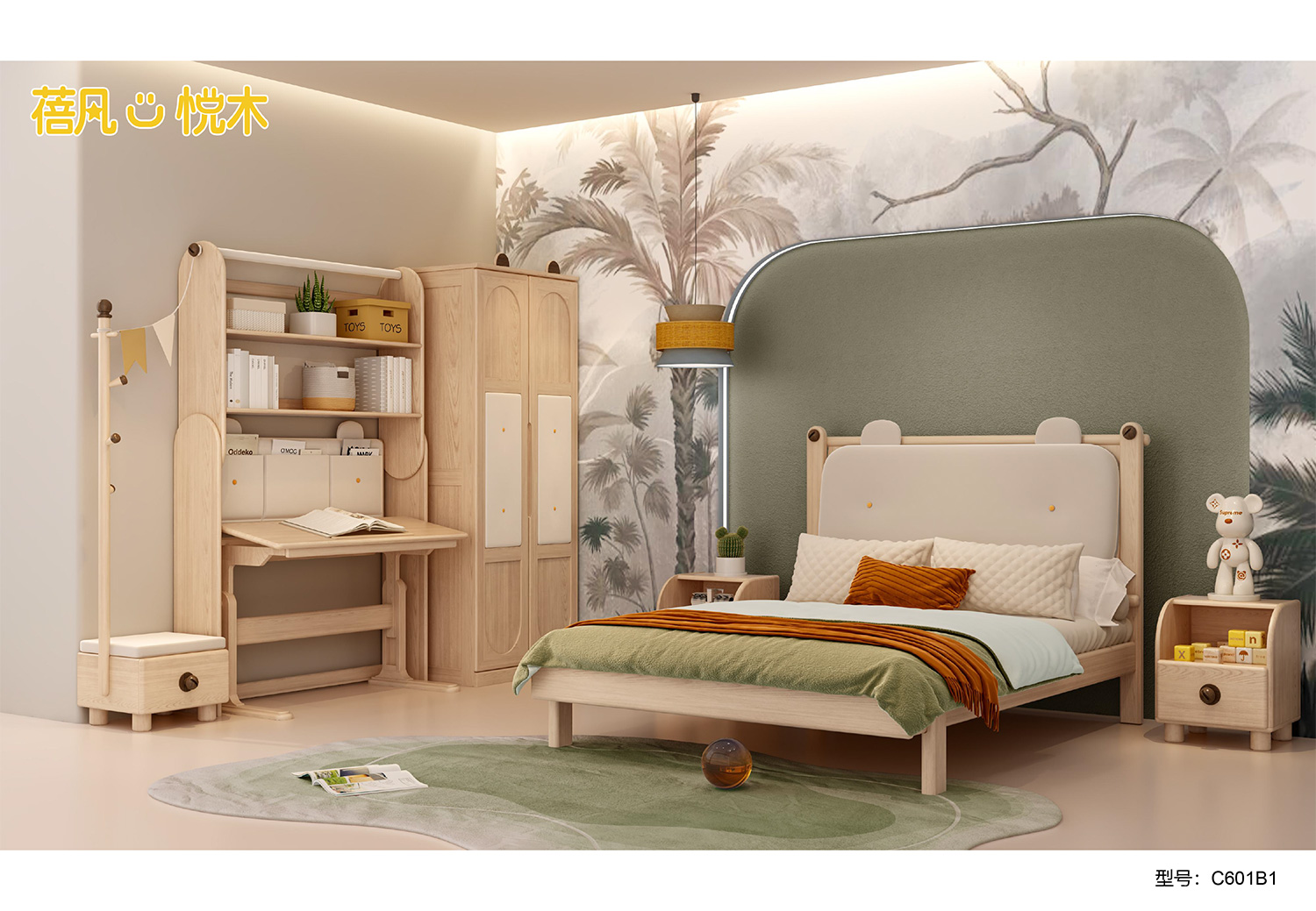 蓓凡悦木系列以自然、童趣与生活美学为核心,打造充满想象力的儿童成长空间,涵盖单床、双层床、高架床、书柜床等多元品类,搭配书桌、衣柜、收纳柜及秋千、滑梯等配套单品,满足睡眠、学习、玩乐、收纳全场景需求。