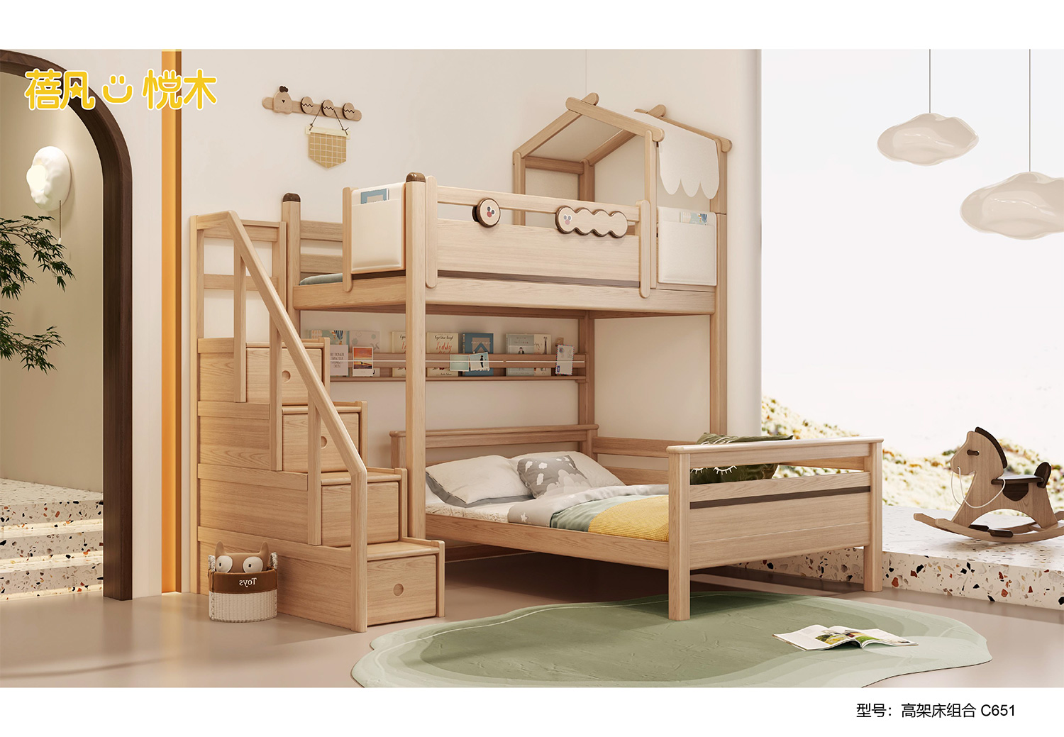 蓓凡悦木系列以自然、童趣与生活美学为核心,打造充满想象力的儿童成长空间,涵盖单床、双层床、高架床、书柜床等多元品类,搭配书桌、衣柜、收纳柜及秋千、滑梯等配套单品,满足睡眠、学习、玩乐、收纳全场景需求。
