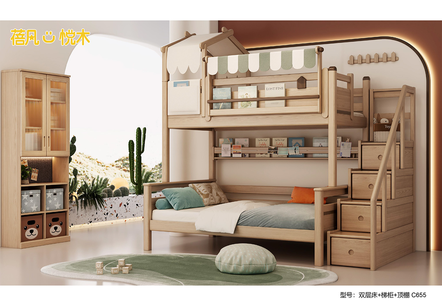 蓓凡悦木系列以自然、童趣与生活美学为核心,打造充满想象力的儿童成长空间,涵盖单床、双层床、高架床、书柜床等多元品类,搭配书桌、衣柜、收纳柜及秋千、滑梯等配套单品,满足睡眠、学习、玩乐、收纳全场景需求。