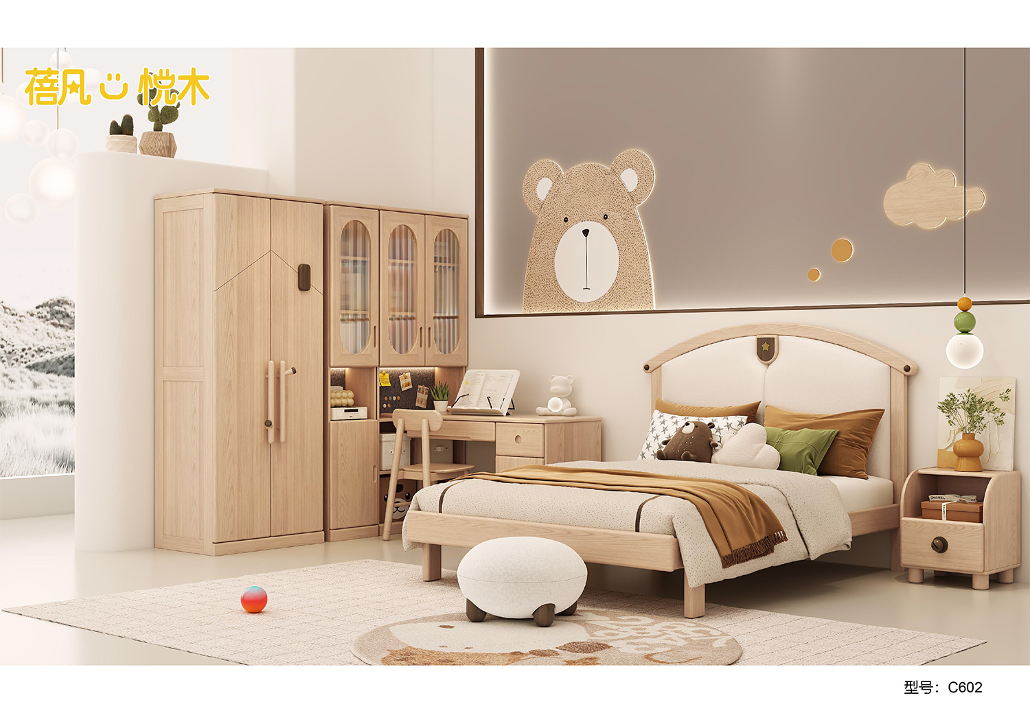 蓓凡悦木系列以自然、童趣与生活美学为核心,打造充满想象力的儿童成长空间,涵盖单床、双层床、高架床、书柜床等多元品类,搭配书桌、衣柜、收纳柜及秋千、滑梯等配套单品,满足睡眠、学习、玩乐、收纳全场景需求。