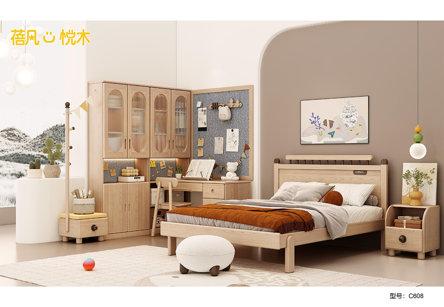 蓓凡悦木系列以自然、童趣与生活美学为核心,打造充满想象力的儿童成长空间,涵盖单床、双层床、高架床、书柜床等多元品类,搭配书桌、衣柜、收纳柜及秋千、滑梯等配套单品,满足睡眠、学习、玩乐、收纳全场景需求。