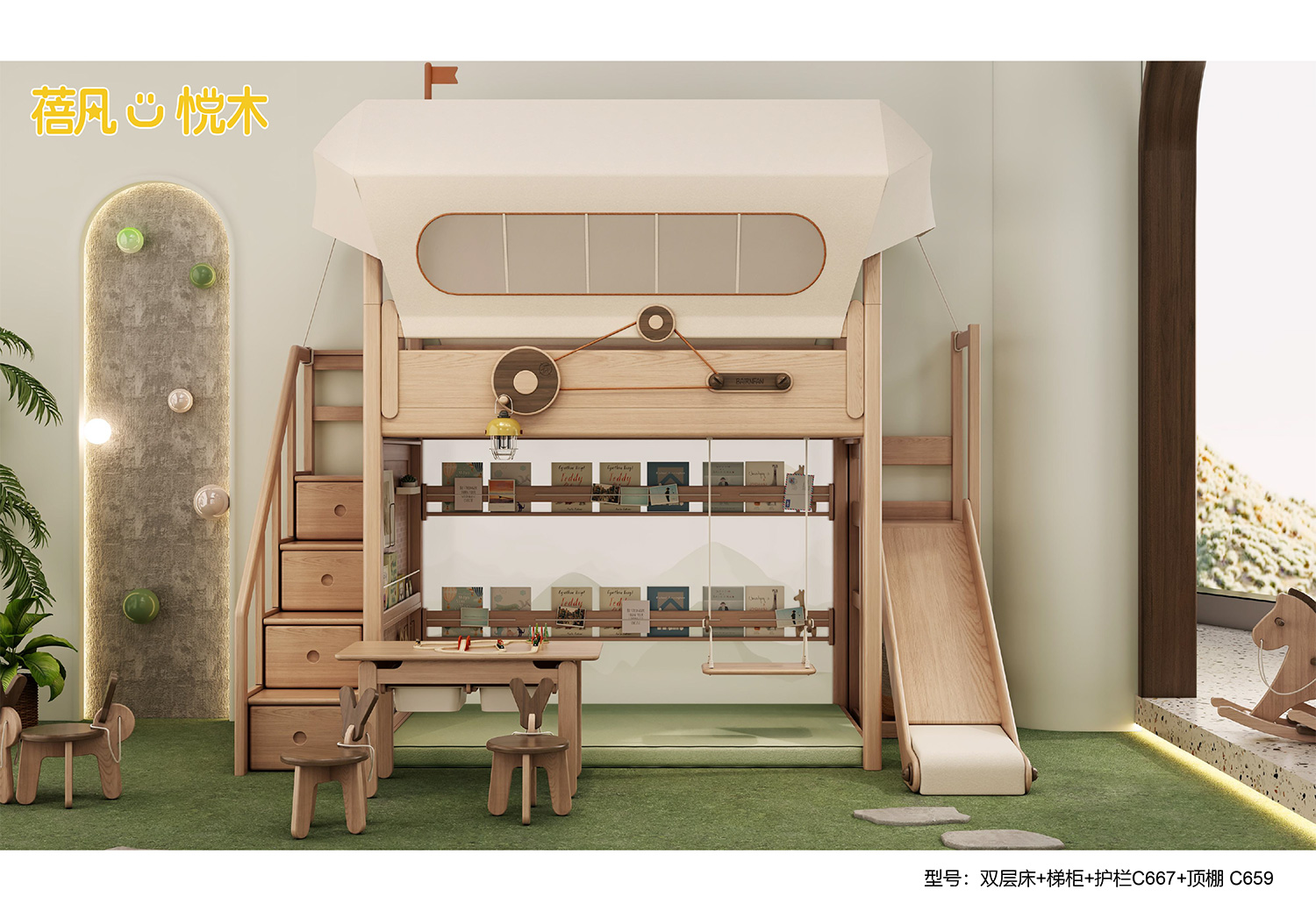 蓓凡悦木系列以自然、童趣与生活美学为核心,打造充满想象力的儿童成长空间,涵盖单床、双层床、高架床、书柜床等多元品类,搭配书桌、衣柜、收纳柜及秋千、滑梯等配套单品,满足睡眠、学习、玩乐、收纳全场景需求。